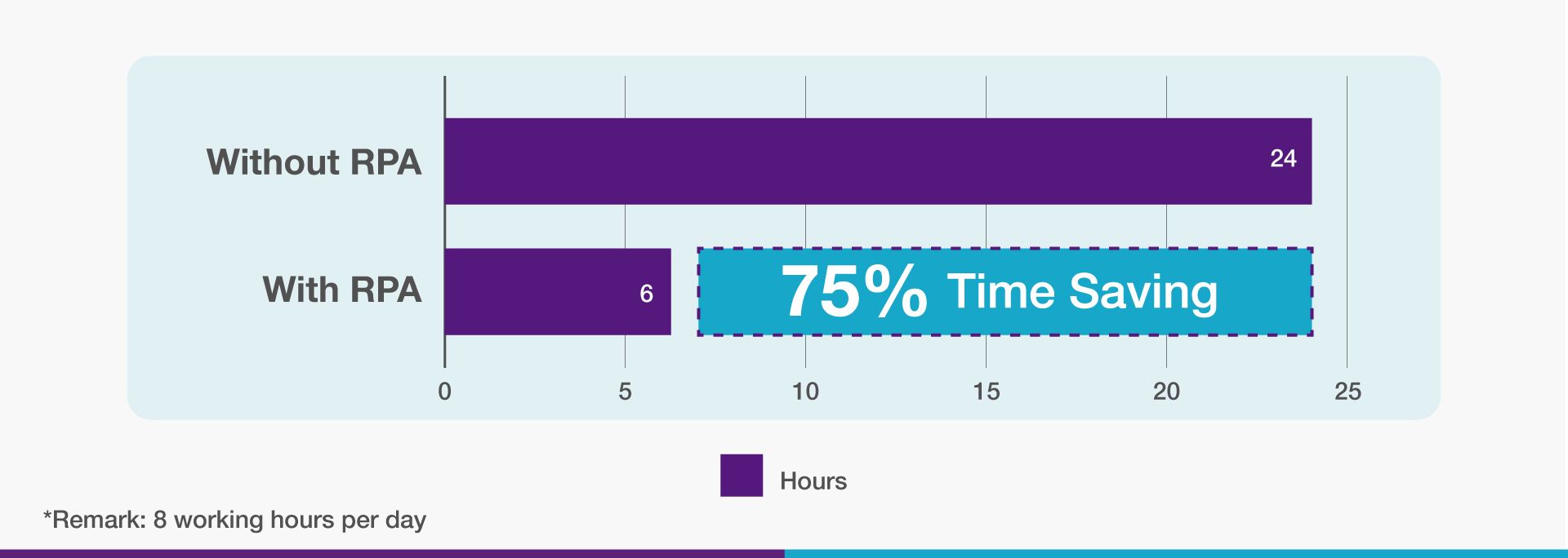 - Mengurangkan penggunaan tenaga kerja pada proses yang berulang dan pekerja dapat memberi lebih tumpuan kepada tugas perolehan yang lebih memerlukan pemikiran kritikal.